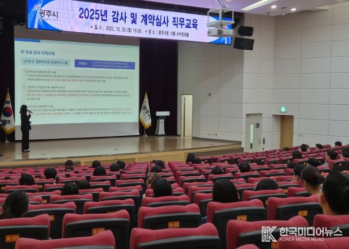 [ 한국미디어뉴스 이보영 기자 ] 광주시는 20일 시청 수어장대홀에서 전 직원을 대상으로 ‘2025년 감사 및 계약심사 직무교육’을 실시했다.