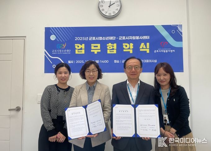 [ 한국미디어뉴스 이보영 기자 ] 군포시청소년재단은 10월 20일 군포시청소년재단 대표이사실에서 군포시자원봉사센터와 지역사회 상생 및 자원봉사 활성화를 위한 업무협약을 체결했다.