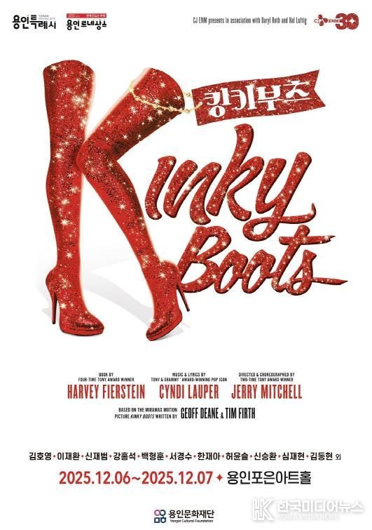 [ 한국미디어뉴스 이원영 기자 ] 용인문화재단은 오는 12월 6일부터 7일까지 용인포은아트홀에서 뮤지컬 ‘킹키부츠’를 선보인다. 이번 공연은 양일간 오후 2시와 7시, 총 4회 진행되며, 관람 연령은 만 8세 이상으로 미취학 아동은 입장이 불가하다.