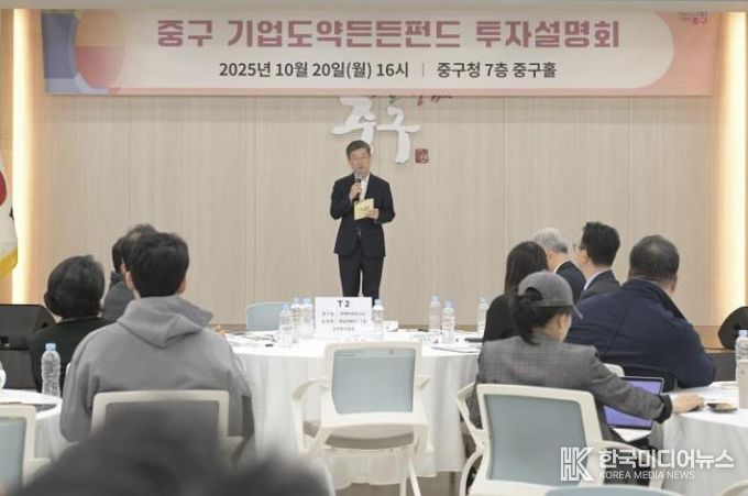 [ 한국미디어뉴스 이보영 기자 ] 서울 중구가 지난 20일 중구청에서 '중구 기업도약든든펀드 투자설명회'를 열고, 성장 잠재력이 높은 중소·벤처기업을 대상으로 투자 유치와 성장 지원 계획을 밝혔다.