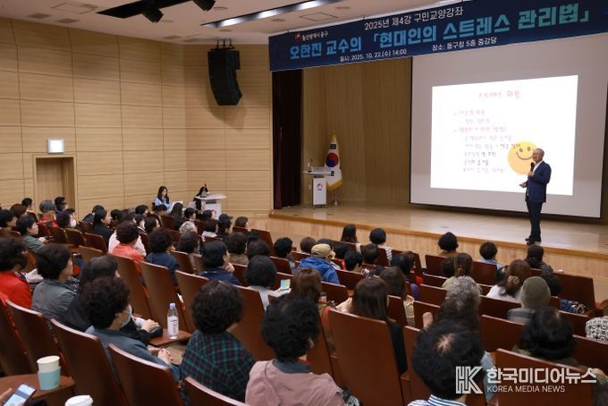 [ 한국미디어뉴스 이보영 기자 ] 울산 동구는 10월 22일 오후 2시 5층 중강당에서 오한진 교수의 ‘스트레스 관리법’이라는 주제로 강연을 개최했다.
