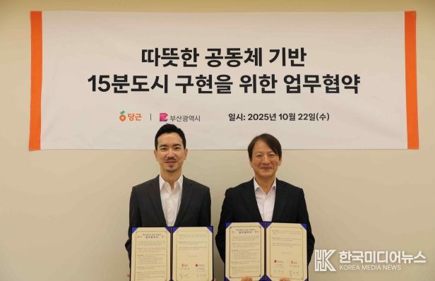 [ 한국미디어뉴스 이원영 기자 ] 부산시는 22일 오후 2시 10분 서울 ㈜당근마켓 본사에서 ㈜당근마켓(대표이사 황도연)과 '따뜻한 공동체 기반 15분도시 구현을 위한 업무협약'을 체결했다고 밝혔다.