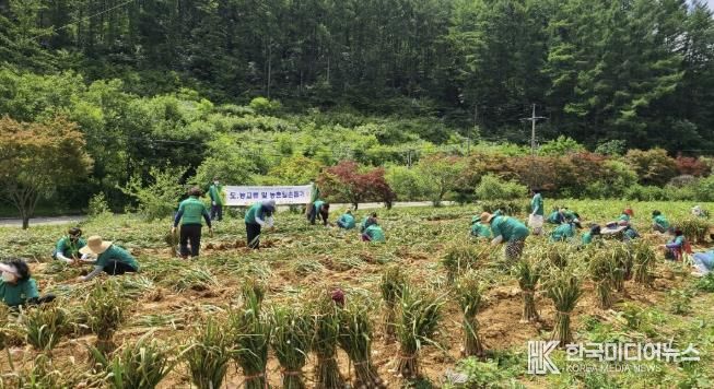 지난 6월 17일부터 19일까지 진행된 단양농산물 수확 일손돕기 행사에는 서울시 24개 자치구 부녀회 1,052명이 참여해 26농가의 마늘 수확을 도왔다.