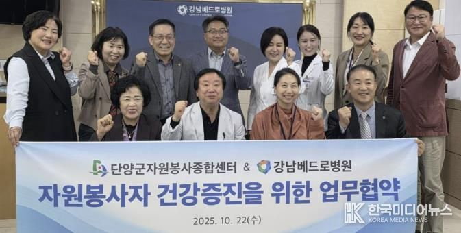 [ 한국미디어뉴스 김풍옥 기자 ] 충북 단양군자원봉사종합센터는 지난 22일 강남베드로병원과 자원봉사자의 건강복지 증진을 위한 업무협약을 체결했다고 밝혔다.