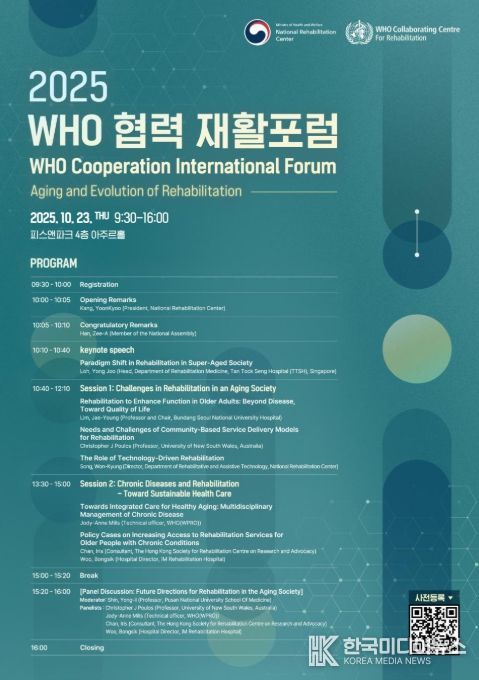 [ 한국미디어뉴스 이원영 기자 ] 보건복지부 국립재활원은 10월 23일 피스앤파크 컨벤션(서울 용산구)에서 ‘세계보건기구(WHO) 협력 재활 토론회’를 대면 및 온라인으로 동시 개최한다.