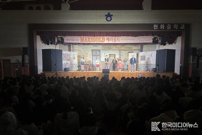 지난 10월 1일과 22일 ▲동일공업고등학교 ▲현화중학교에서 진행된 뮤지컬 '메리골드'는 옴니버스 형식으로 구성되어, 서로 다른 사연을 지닌 인물들의 이야기를 통해 청소년들이 가족과 친구, 그리고 자신의 삶을 되돌아보며 생명의 소중함과 공감의 가치를 느낄 수 있도록 기획됐다.