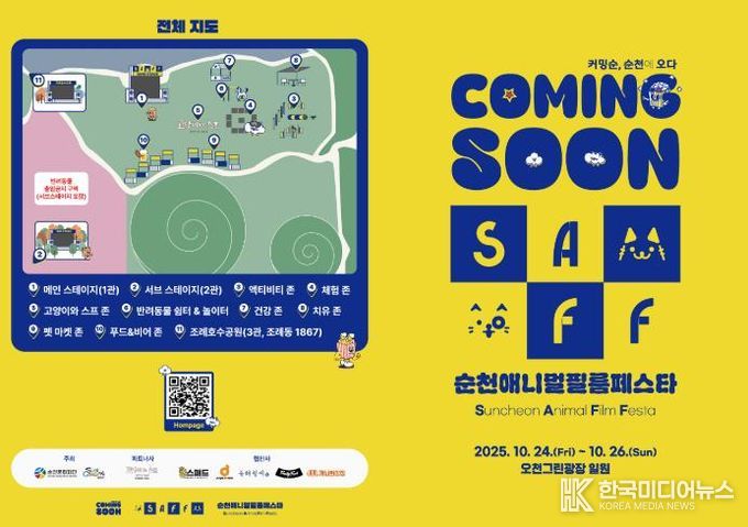 [ 한국미디어뉴스 이종철 기자 ] 순천시와 순천문화재단에서 오는 24일부터 26일까지 3일간, 반려동물과 함께 즐길 수 있는 특별한 야외 영화축제 ‘2025 순천애니멀필름페스타(SAFF)’를 공동으로 개최한다.