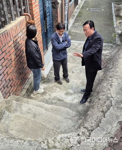 [ 한국미디어뉴스 이원영 기자 ] 심재억 강북구의회 도시복지위원장은 지난 2025년 10월 21일, 송천동 내 파손된 계단이 있는 골목길(삼양로22길12 앞)을 강북구 도로관리과 담당자와 방문하고 시설 개선을 촉구했다.