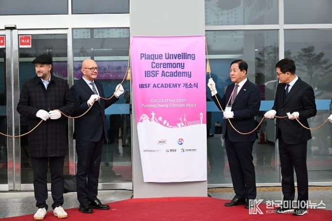 [ 한국미디어뉴스 이원영 기자 ] 2025 세계올림픽도시연맹 총회가 한창 진행 중인 평창올림픽플라자에서는 오늘(10월 23일) 오후, 이보 페리아니(Ivo Ferriani) IBSF(국제봅슬레이스켈레톤연맹) 회장과 전찬민 IBSF 부회장 겸 KBSF(대한봅슬레이스켈레톤연맹) 회장, 최성희 문체부 체육협력관, 심재국 평창군수 그리고 원윤종 등 국내외 썰매 종목 관계자와 선수들이 참석한 가운데 'IBSF 아카데미 평창사무소 개소식'이 열렸다.