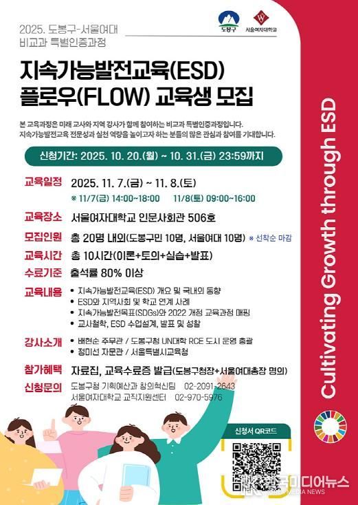 오언석 도봉구청장은 “지속가능발전교육은 더 나은 지역과 미래를 만드는 핵심 가치.”라며, “이번 과정 운영으로 대학과 지역사회가 함께 성장하고, 학생과 주민 모두가 주체로 참여하는 새로운 교육 모델을 만들어 나가겠다.”라고 말했다.