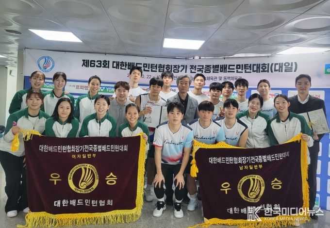 [ 한국미디어뉴스 이보영 기자 ] 김천시청 배드민턴단이 10월 22일부터 29일까지 전남 해남군 우슬체육관에서 열린 제63회 대한배드민턴협회장기 전국종별배드민턴대회에서 남자 단체전과 여자 단체전 모두 우승을 차지하며 전국 최강 실업팀의 저력을 입증했다.