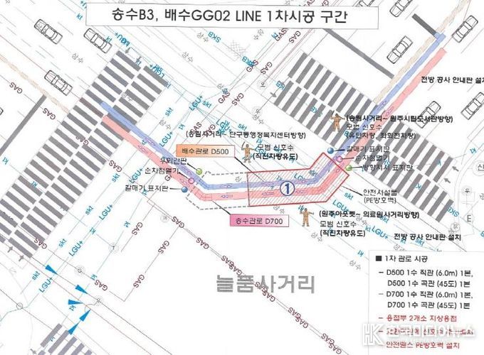 [ 한국미디어뉴스 이원영 기자 ] 원주시상하수도사업소는 태장배수지 설치사업의 일환으로 진행되는 늘품사거리 교차로 구간 송배수관로 설치공사를 야간에 실시한다.