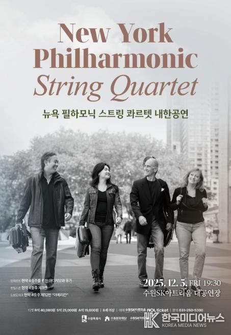 [ 한국미디어뉴스 이보영 기자 ] 수원문화재단은 오는 12월 5일 금요일 오후 7시 30분, 수원SK아트리움 대공연장에서 ‘뉴욕 필하모닉 스트링 콰르텟 내한공연’을 개최한다.