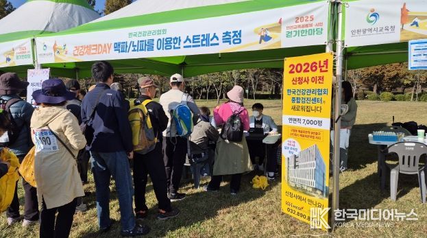 [ 한국미디어뉴스 이원영 기자 ] 한국건강관리협회 인천광역시지부는 지난 11월 1일, 인천대공원에서 열린 ‘시민걷기한마당’ 행사에 참여해 시민들이 직접 건강 상태를 점검할 수 있는 체험 부스를 운영했다. 이번 행사는 인천시교육청 주관으로, 가족 단위 참가자들이 함께 걷기 운동을 즐기며 건강의 중요성을 되새길 수 있도록 마련됐다.