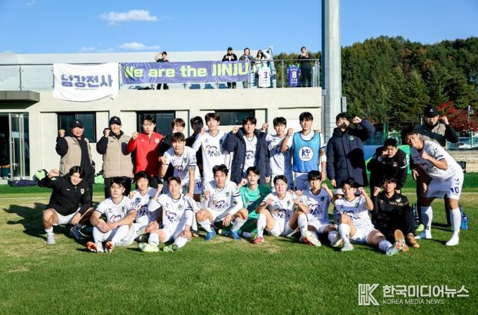 [ 한국미디어뉴스 이원영 기자 ] 진주시민축구단이 지난 1일 강원도 평창군 진부면민체육공원 축구장을 찾아 치른 2025 K4리그 31라운드 원정경기에서 2 – 0 무실점 승리로 평창유나이티드FC를 꺾었다.