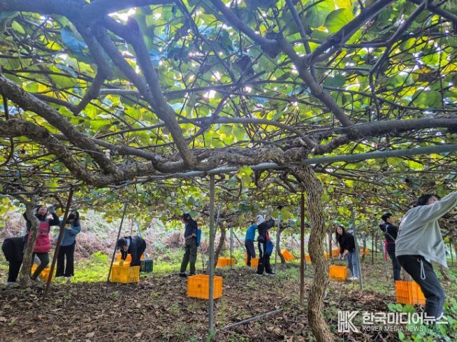 이날 오후 1시 30분부터 5시 30분까지 참다래 수확과 운반, 주변 환경 정비 등 다양한 작업에 참여하며 구슬땀을 흘렸다.
