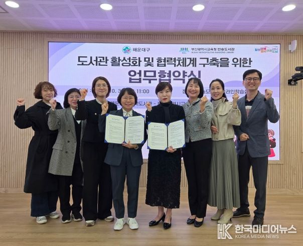 [ 한국미디어뉴스 이원영 기자 ] 해운대구는 10월 30일, 부산광역시립반송도서관과 도서관 활성화 및 협력체계 구축을 위한 업무협약을 체결했다.