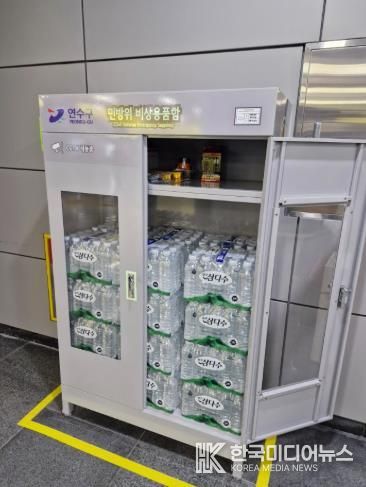 대형 비상용품함에는 재난 발생 시 활용할 수 있는 ▲식수, ▲응급키트, ▲손전등, ▲담요, ▲구급약품 등 생존 필수품이 비치되어 있다.
