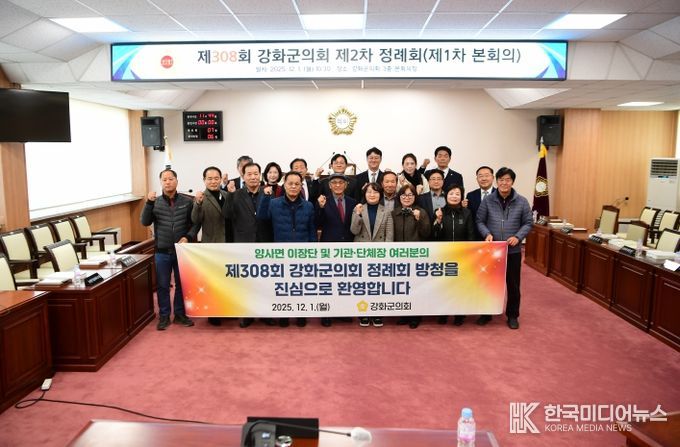 [ 한국미디어뉴스 이원희 기자 ] 강화군의회는 1일 제308회 제2차 정례회 본회의에 강화군 양사면 이장단 및 주요 기관·단체장이 참석해 방청을 진행했다고 밝혔다.