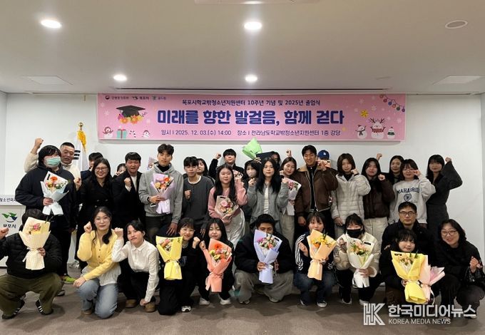 [ 한국미디어뉴스 이종철 기자 ] 목포시학교밖청소년지원센터(센터장 박희자)는 개소 10주년을 맞아 지난 12월 3일, 전라남도학교밖청소년지원센터 강당에서 ‘학교 밖 청소년 졸업식’을 개최했다.