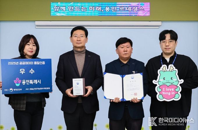 [ 한국미디어뉴스 이원영 기자 ] 용인특례시는 19일 행정안전부가 주관한 ‘2025년 공공데이터 품질인증’에서 우수기관으로 선정돼 지방자치단체 가운데 최초로 공공데이터 품질인증을 획득했다고 22일 밝혔다.