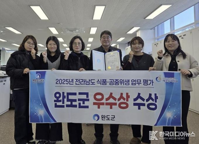 [ 한국미디어뉴스 이종철 기자 ] 완도군은 전라남도에서 실시한 '2025년 식품·공중위생 업무 평가'에서 ‘우수상’을 수상했다.