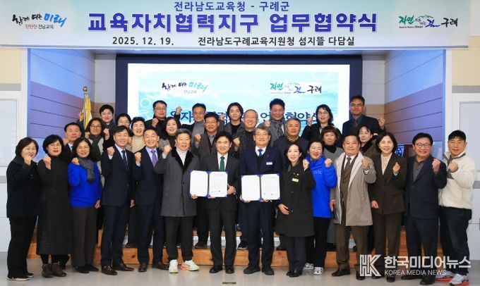 [ 한국미디어뉴스 이종철 기자 ] 구례군은 지난 19일, 구례교육지원청 섬지뜰 다담실에서 전라남도교육청, 구례교육지원청, 구례군의회, 학교장, 민관산학위원, 학부모연합회 등 50여명이 참석한 가운데‘구례교육자치협력지구’업무협약을 체결했다고 밝혔다.