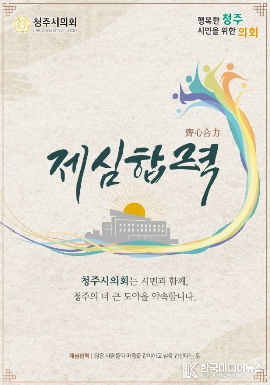 [ 한국미디어뉴스 김풍옥 기자 ] 청주시의회는 2026년 병오년(丙午年) 새해 신년화두로 ‘제심합력(齊心合力)’을 선정했다.
