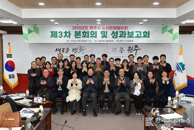 [ 한국미디어뉴스 이원영 기자 ] 원주시 노사민정협의회는 23일 오후 5시 시청 10층 대회의실에서 제3차 본회의 및 성과보고회를 개최했다.