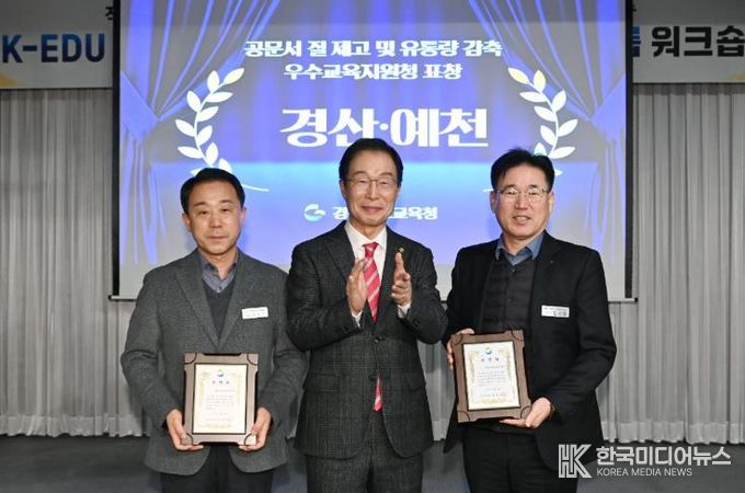 [ 한국미디어뉴스 이보영 기자 ] 경북교육청은 2025년 학교로 발송하는 공문서의 유통량 감축과 질적 개선에 이바지한 우수교육지원청으로 경산교육지원청과 예천교육지원청을 선정하고 교육감 표창을 수여했다고 30일 밝혔다.
