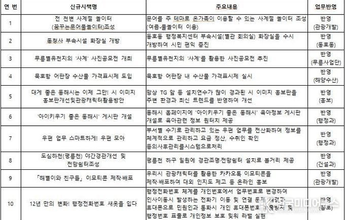 동해시는 지난 2024년부터 직원 제안 정책 발굴 제도를 운영해 왔으며, 직원들이 제안한 아이디어 55건 가운데 10건의 신규 시책을 실제 시정에 반영해 추진하는 성과를 거뒀다.