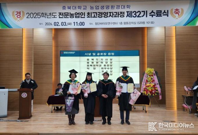 [ 한국미디어뉴스 김풍옥 기자 ] 충북 진천군 농업기술센터는 역량있는 농업인 CEO를 양성하는 ‘전문농업인 최고경영자과정’ 수료식에서 진천군 농업인 강민우 씨가 충북대학교 총장상을 수상했다고 3일 밝혔다.