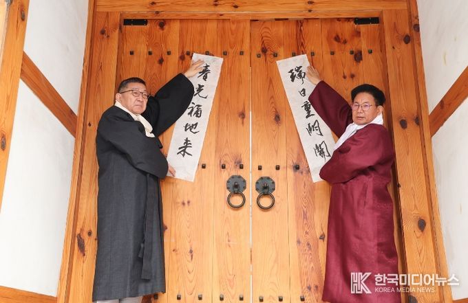 박 구청장은 행사에 앞서 한복 두루마기를 착용한 뒤, 마포문화원장 등 참석자들과 함께 입춘축을 광흥당 대문에 게첩하고 기념촬영을 진행했다.