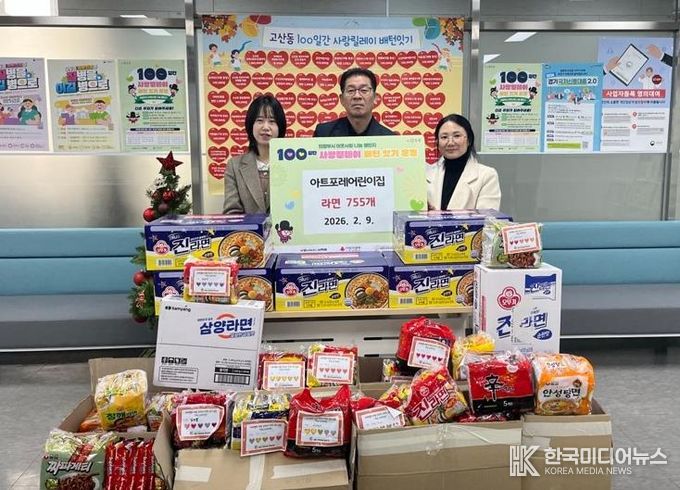 이날 전달식에는 아트포레어린이집 원장과 교사가 참석해 아이들이 손수 모아온 라면을 전달하는 뜻깊은 시간을 가졌다. 라면은 고산동 지역 내 독거노인, 저소득 가구 등 도움이 필요한 이웃들에게 전달될 예정이다.
