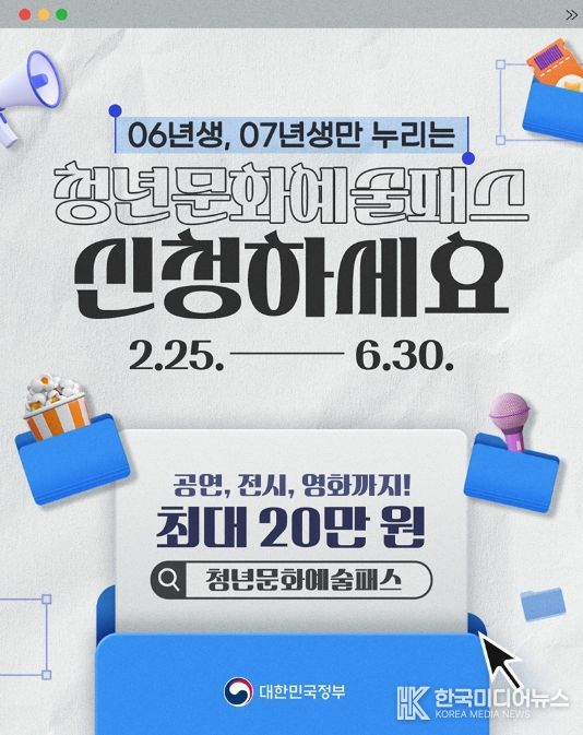 [ 한국미디어뉴스 황영수 기자 ] 06년생, 07년생만 누리는 '청년문화예술패스' 신청하세요.