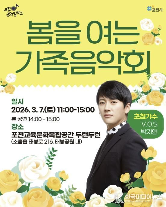 [ 한국미디어뉴스 김서안 기자 ] 포천시는 오는 3월 7일 포천시 교육문화복합공간 두런두런에서 ‘포천음악창작소, 봄을 여는 가족음악회’를 개최한다.