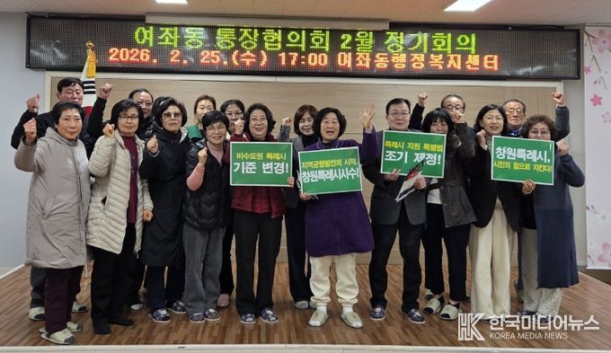 [ 한국미디어뉴스 김홍철 기자 ] 창원특례시 진해구 여좌동은 지난 25일 2월 통장 정기회의를 통해 창원특례시 지위 유지 및 권한 확보를 위한 주민 참여 캠페인을 실시했다.