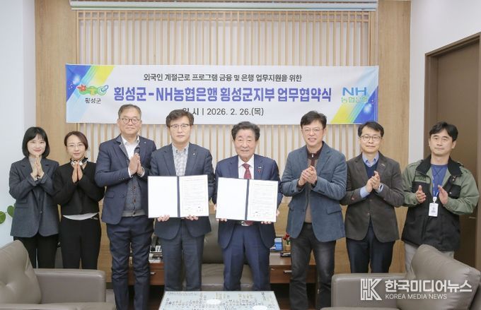 [ 한국미디어뉴스 이원영 기자 ] 횡성군은 26일 오전 10시 군청 군수실에서 NH농협은행 횡성군지부와 ‘외국인 계절근로자 금융 및 은행 업무지원을 위한 업무협약(MOU)’을 체결했다.