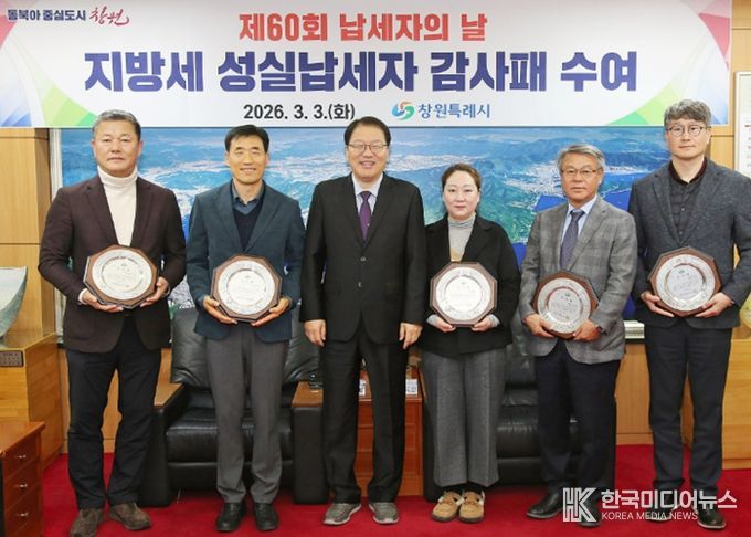 [ 한국미디어뉴스 김홍철 기자 ] 창원특례시는 3월 3일 ‘제60회 납세자의 날’을 맞아 지방세를 성실히 납부해 시민의 귀감이 되고 지방재정 운영에 기여한 성실납세자에게 감사패를 수여했다고 밝혔다.