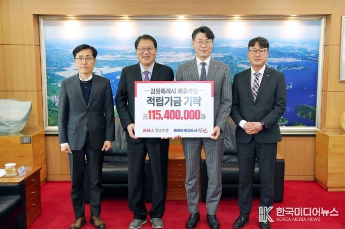 [ 한국미디어뉴스 김홍철 기자 ] 창원특례시는 3월 5일 시청 접견실에서 BNK경남은행 관계자들이 참석한 가운데 제휴카드 적립기금 전달식을 개최했다.