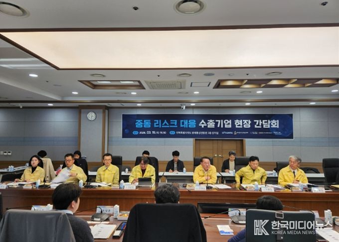 이날 간담회에는 중동 및 인근 지역 수출기업과 한국무역협회 전북지사, KOTRA 전북지원본부, 한국무역보험공사 전북지사 등 유관기관이 참석해 물류 지연, 운임 상승, 보험 비용 증가 등 현장 애로를 공유했다.