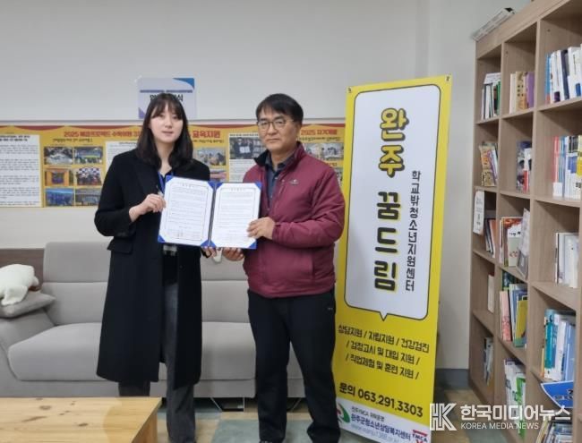 한편, 완주군학교밖청소년지원센터는 학교 밖 청소년을 대상으로 상담‧교육‧자립지원 등 다양한 맞춤형 서비스를 제공하며 청소년이 건강하게 사회에 적응할 수 있도록 지원하고 있다.