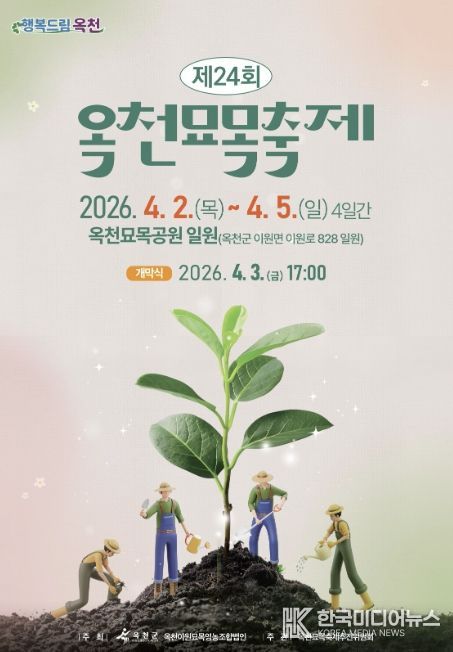 [ 한국미디어뉴스 김풍옥 기자 ] 옥천군은 오는 4월 2일부터 5일까지 4일간 옥천묘목공원(이원면 이원로 828) 일원에서 제24회 옥천묘목축제를 개최한다. 올해 축제는 기존 3일에서 하루 연장해 총 4일간 진행되며, 체험 중심 프로그램과 다양한 공연, 볼거리로 방문객을 맞이할 예정이다.