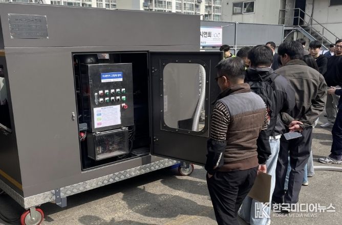 [ 한국미디어뉴스 이원영 기자 ] 금천구는 지난 3일 금천자원재활용처리장에서 와이제이산업과 공동 개발한 ‘수소 전기 노면 분진 청소차’와 ‘미세먼지 고형화 장치’의 시연회를 개최했다고 밝혔다.