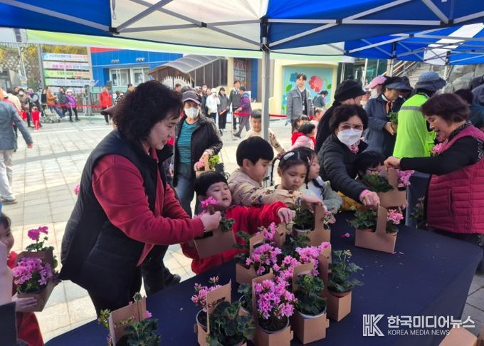 행사는 자유공원, 70계단쉼터, 연안동 행정복지센터에서 오전 10시부터 11시까지 1시간가량 진행됐다. 특히 제라늄과 방울철쭉 등 초화 5,000본을 1인당 2본씩 모두 배부하며 나무 심기와 녹색 자원의 가치를 알리는 데 주력했다.