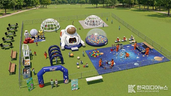 이번 야외 키즈카페는 단순한 놀이공간을 넘어 체험 중심의 ‘테마형 놀이공간’으로 꾸며진다. 테마는 ▲뚝딱뚝딱 건축가 ▲와글와글 동물농장 ▲산불을 조심해 ▲신병교육대 ▲신비한 우주 등 5가지다. 각 공간에서는 역할놀이와 신체활동, 미션수행이 결합된 프로그램을 통해 아이들이 건축가, 소방관, 우주비행사 등 다양한 직업과 역할을 체험할 수 있도록 했다.