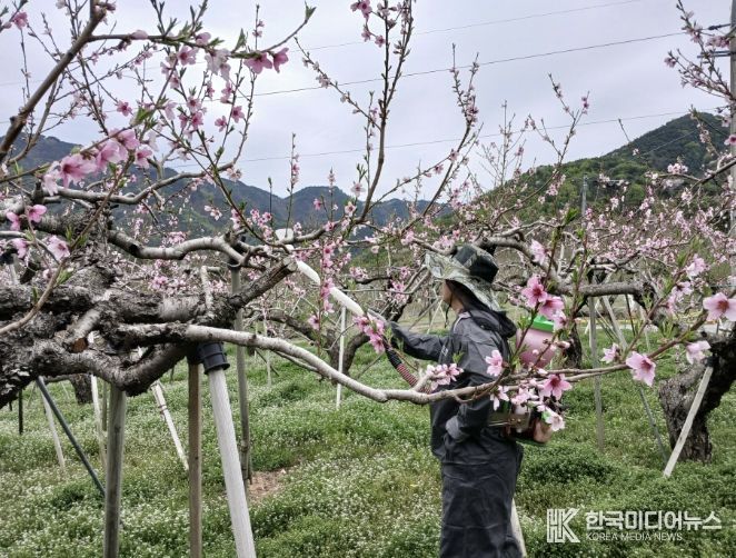 농업기술센터는 특히 중심화에 피해가 발생한 경우, 측화에 인공수분을 실시해 착과량을 확보하고, 적과 시기를 늦춰 최대한 열매 수를 유지하도록 지도하고 있다.