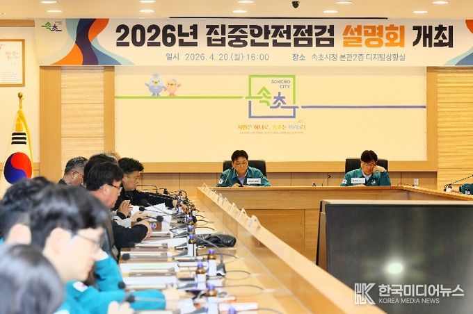 [ 한국미디어뉴스 이원영 기자 ] 속초시는 4월 20일 시청 디지털상황실에서 배상요 속초시장 권한대행 부시장 및 관계 공무원과 전기·가스·건축 등 분야별 안전관리자문단 등 58명이 참석한 가운데 2026년 집중안전점검 담당자 설명회를 개최했다.