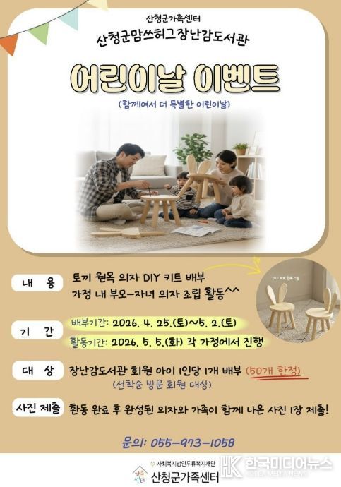 [ 한국미디어뉴스 김홍철 기자 ] 산청군가족센터는 어린이날을 맞아 ‘함께여서 더 특별한 어린이날’사업을 추진한다고 21일 밝혔다.