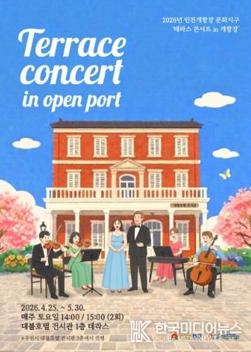 [ 한국미디어뉴스 최치남 기자 ] (재)인천중구문화재단은 오는 4월 25일부터 5월 30일까지 매주 토요일마다 인천 개항장 문화지구 내 대불호텔 전시관 테라스에서 '테라스 콘서트 in 개항장'’을 운영한다고 밝혔다.